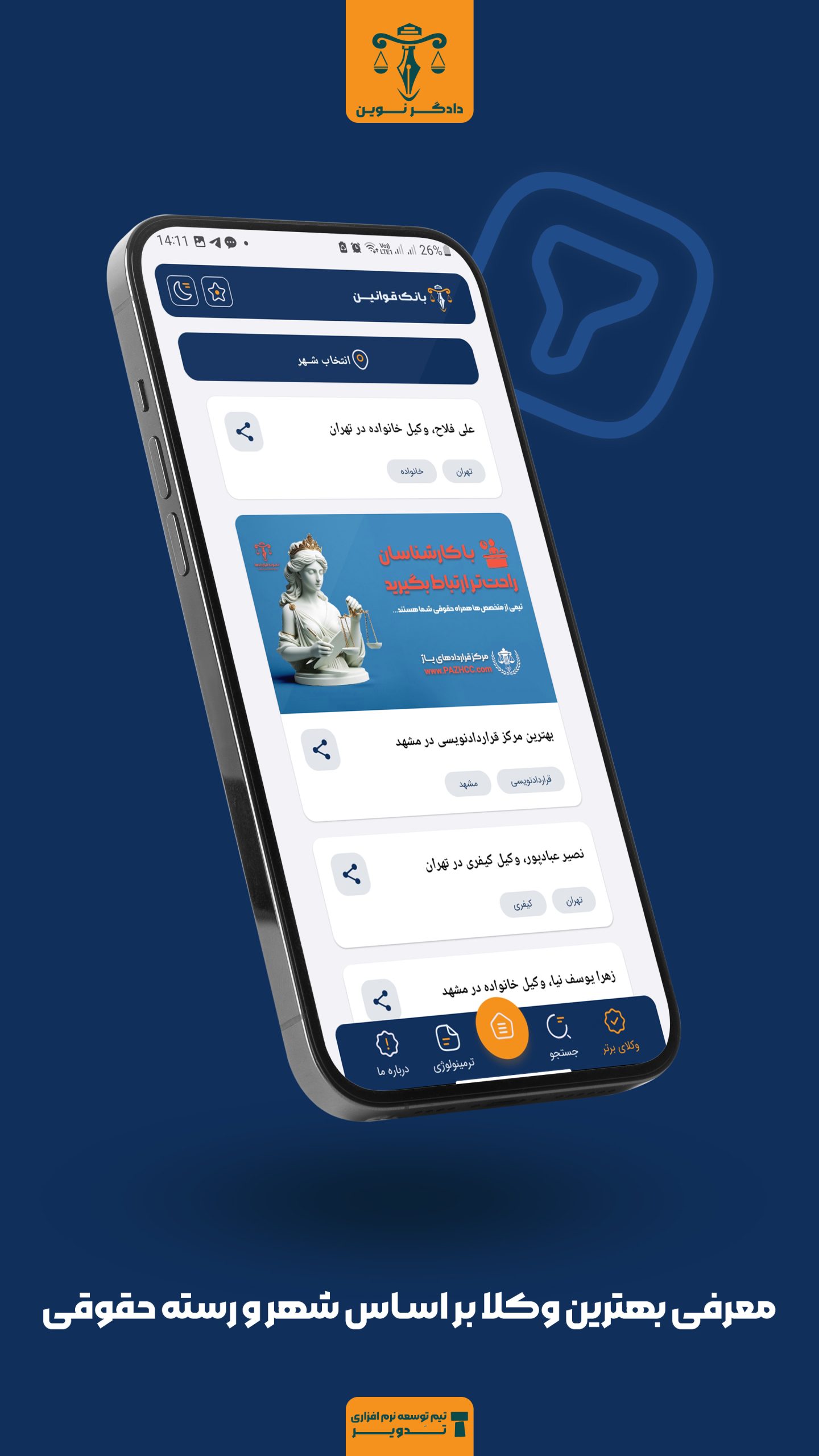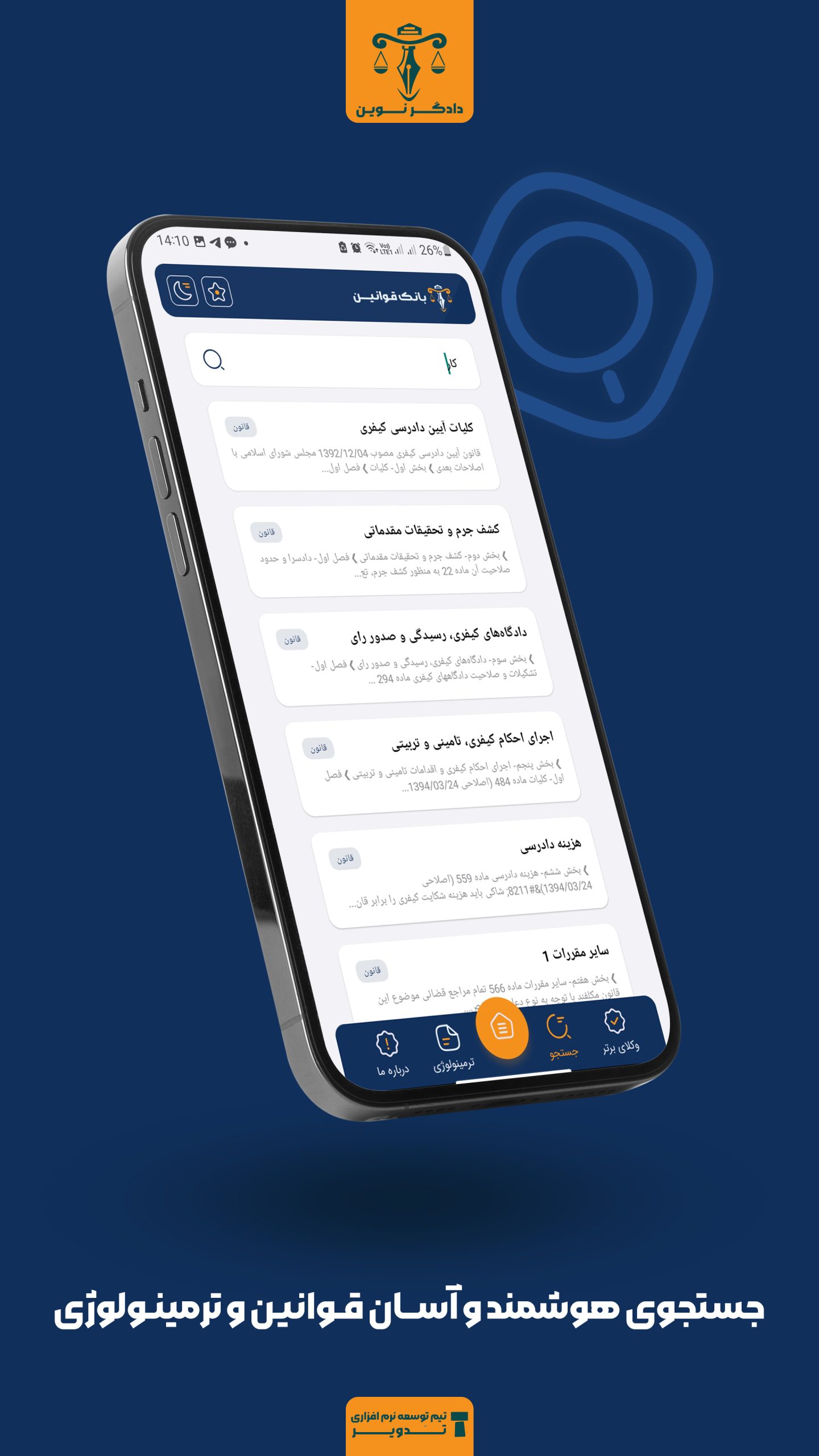 ویژگیهای کلیدی و بارز اپلیکیشن بانک قوانین – دادگر نوین: